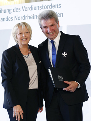 Der ehemalige nordrhein-westfälische Innovationsminister Prof. Dr. Andreas Pinkwart wurde mit dem Verdienstorden des Landes NRW ausgezeichnet. Diese besondere Ehrung wurde ihm von Ministerpräsidentin Hannelore Kraft (SPD) während einer Feierstunde im Präsidentenschlösschen der Bezirksregierung Düsseldorf überreicht.