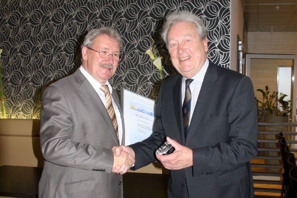Hans-Peter Schönesweiß überreichte Wolfgang Erpenbeck den Essener Bürgertaler (Foto: FDP-Fraktion Essen)